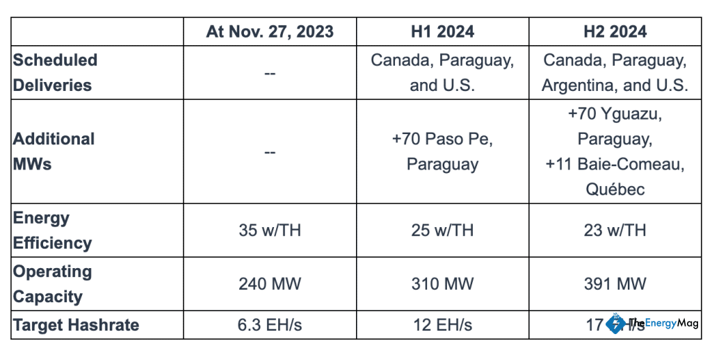 In that way, Bitfarms projects to reach 17 EH/s while expanding power capacities by 151 MW within 2024. Yet, it still needs another 180 MW to redeploy the 4.3 EH/s of M30S and M31S that will be unplugged this year. It remains to be seen when and how the redeployment will take place given the uncertainties of bitcoin’s hashprice after halving.