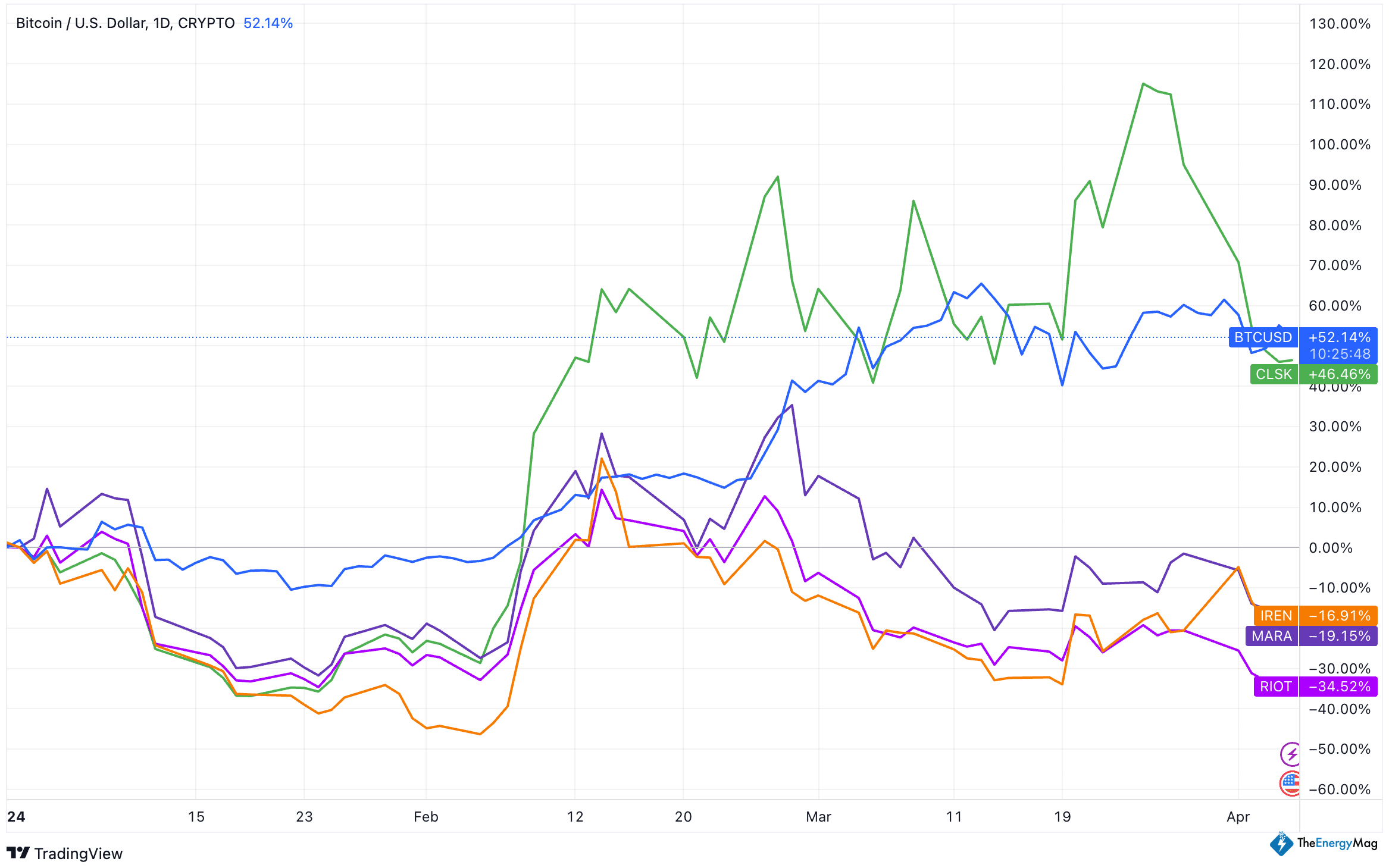 Large-scale public bitcoin mining firms with ambitious growth plans in North America have raised more funds from stock offerings in Q1 alone than they did during the second half of 2023.