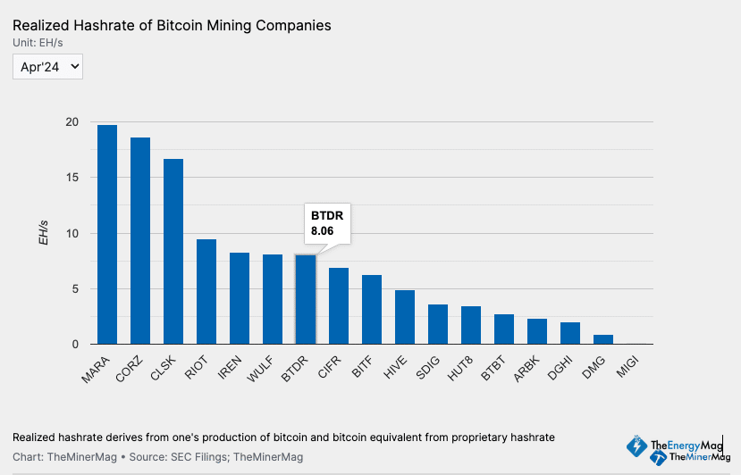 It was among the ten largest publicly traded bitcoin mining companies by realized proprietary hashrate in April 2024.