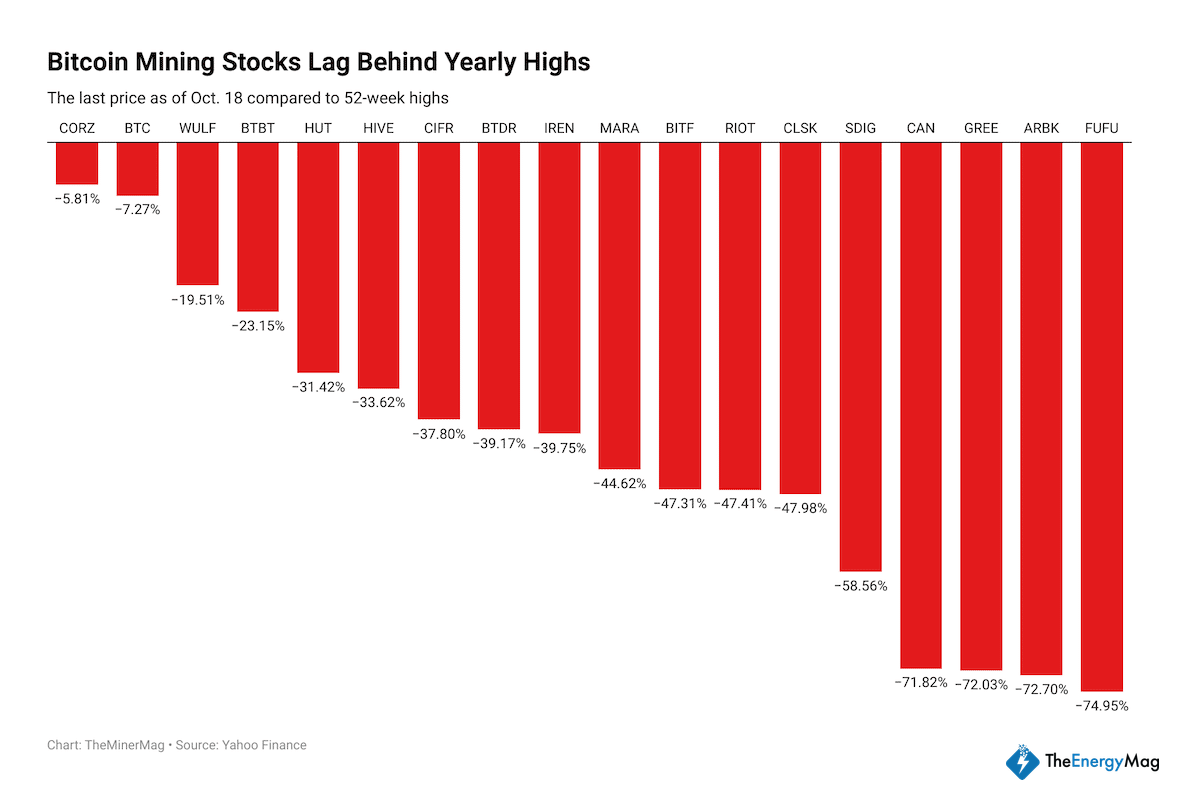 Mining Stocks Outperform Bitcoin But Trail Yearly Peaks